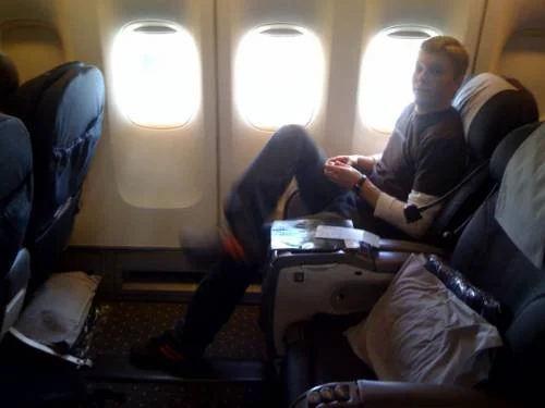 My trip to Germany begins auspiciously when my colleague Henning gets us upgraded to business class. Now this is legroom. Leah Buley February 11, 2008