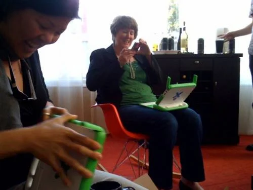 The OLPCs finally arrived at Adaptive Path. My dear colleague Kate was so excited that she had to take a picture, and I was so excited that I had to take a picture of Kate!